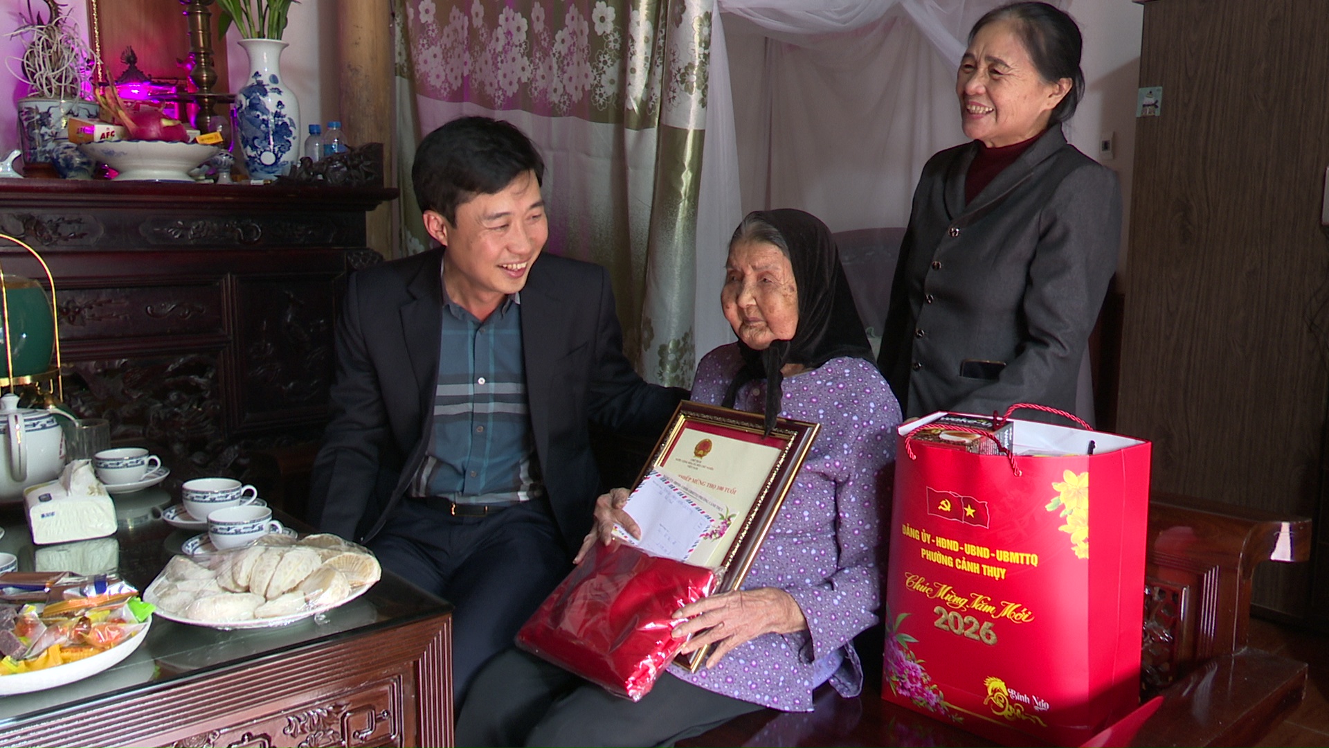 Đồng chí Nguyễn Ngọc Tú - Bí thư Đảng ủy, Chủ tịch HĐND phường đã đến thăm và tặng quà cụ Lê Thị Đê, ở TDP Tây, tròn 100 tuổi; thăm gia đình ông Nguyễn Văn Thịnh, ở TDP Thuận Lý, người hoạt động kháng chiến bị nhiễm chất độc hóa, tỷ lệ 81%.