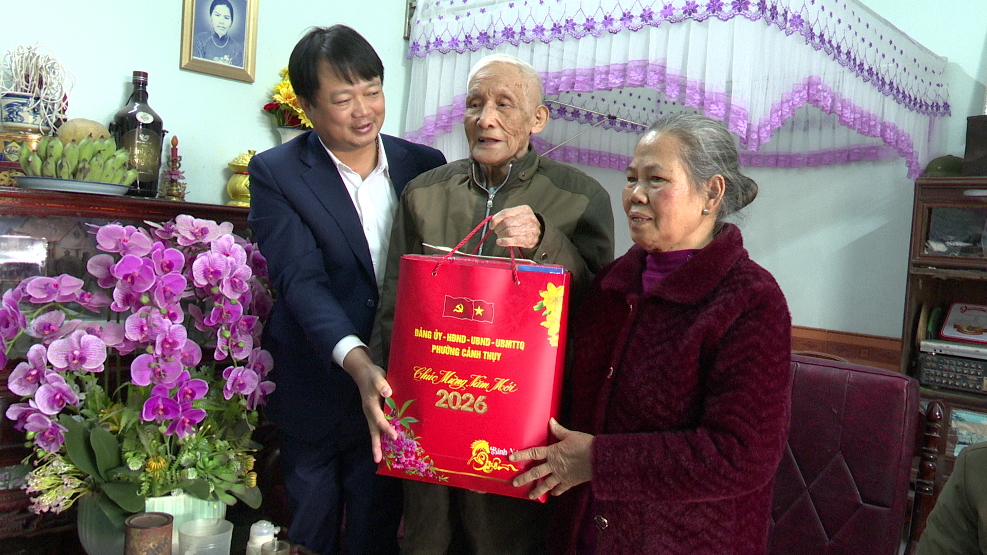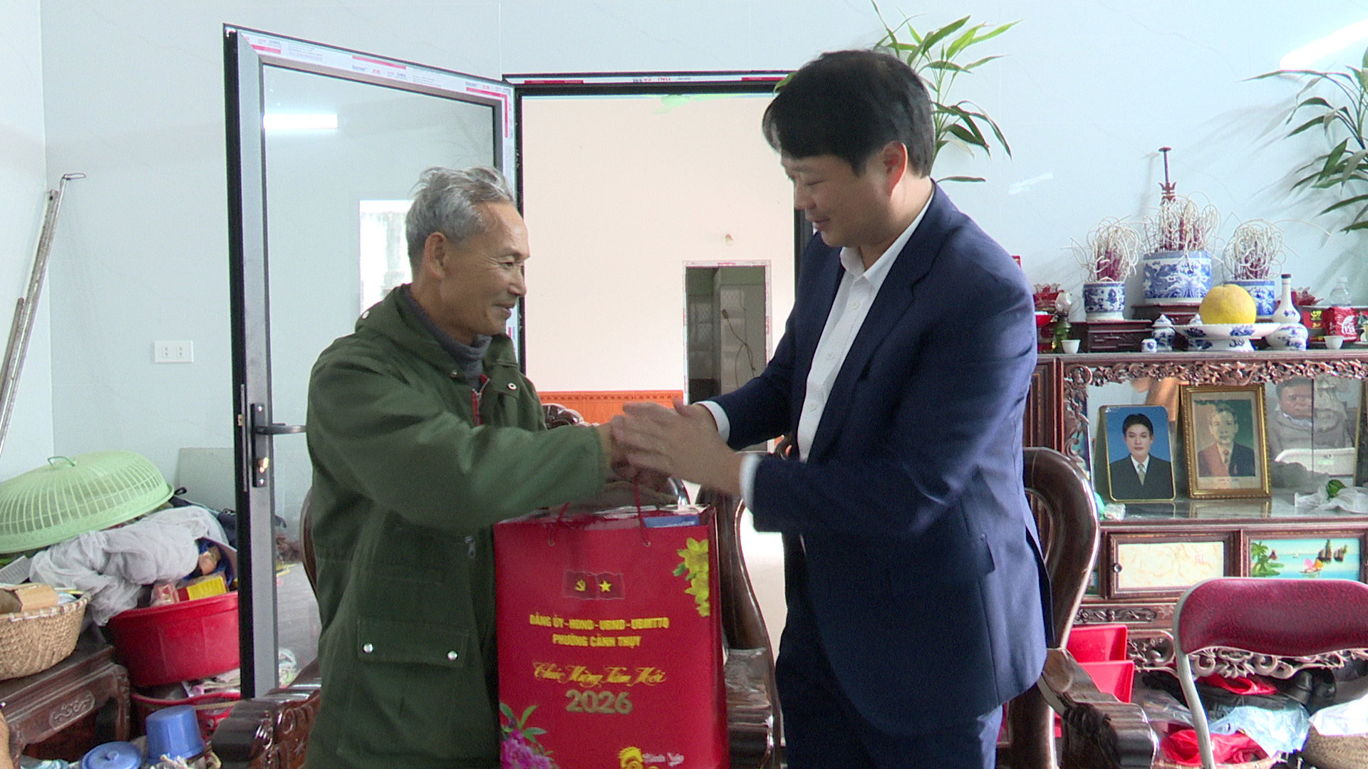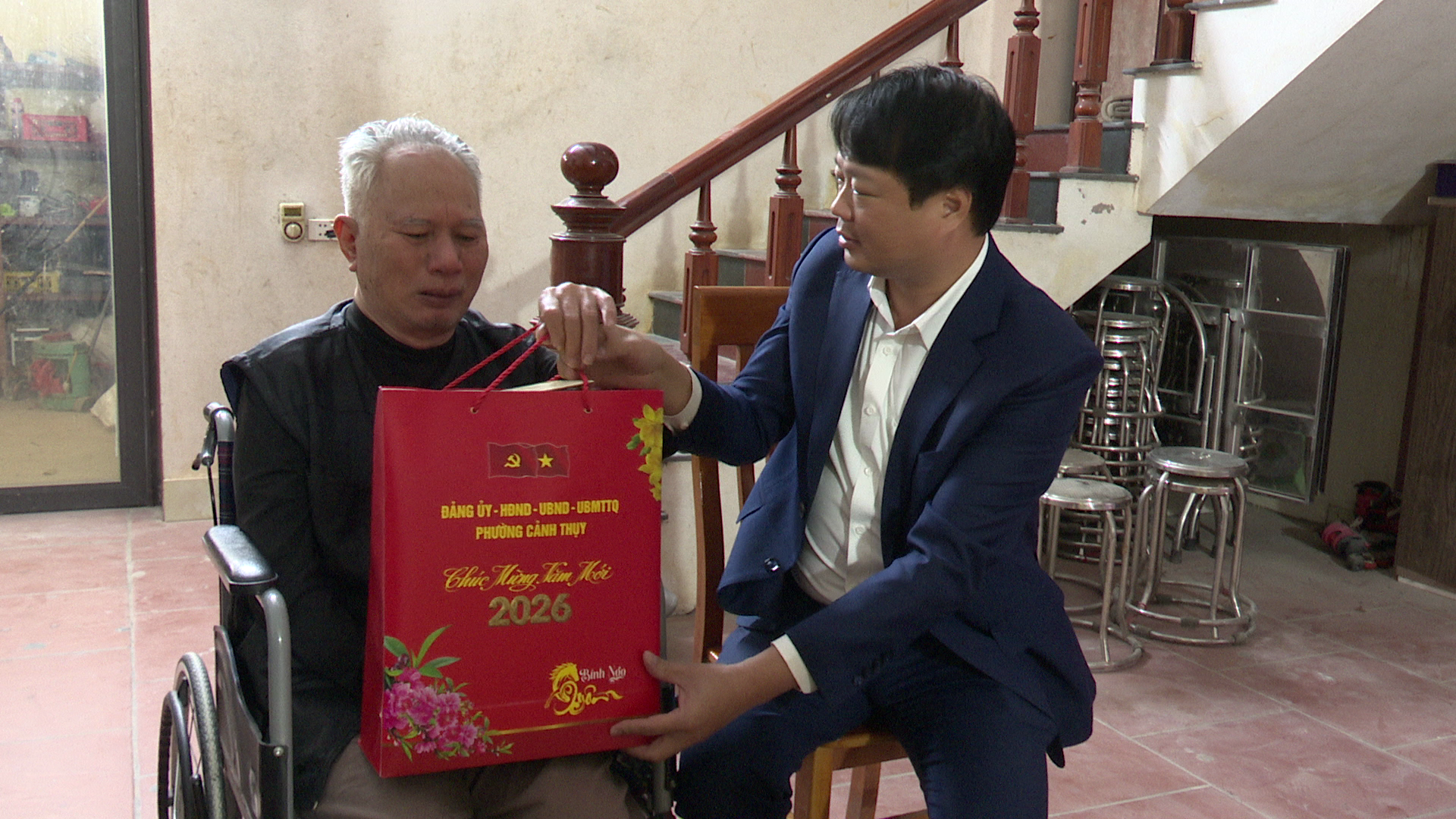 Động viên hộ có hoàn cảnh khó khăn vươn lên trong cuộc sống. Thay mặt Đảng ủy, HĐND, UBND, UBMTTQ phường Cảnh Thụy, nhân dịp Tết Nguyên đán Bính Ngọ 2026, đồng chí chúc các gia đình đón năm mới dồi dào sức khỏe, hạnh phúc và mong muốn các thương binh, người nhiễm chất độc hóa học, gia đình có công tiếp tục gương mẫu, tích cực tham gia các phong trào tại địa phương góp phần xây dựng phường Carh Thụy ngày càng phát triển giàu mạnh.