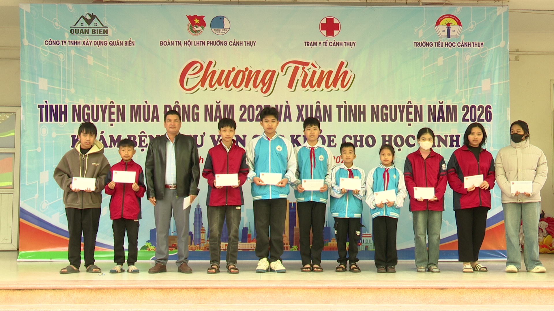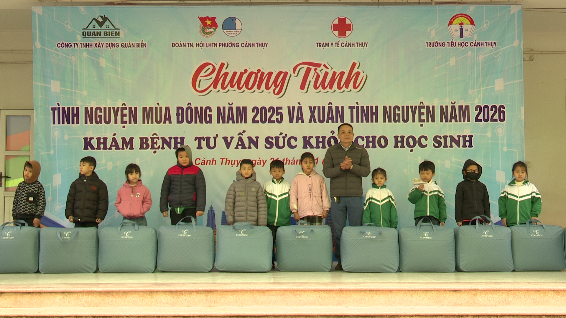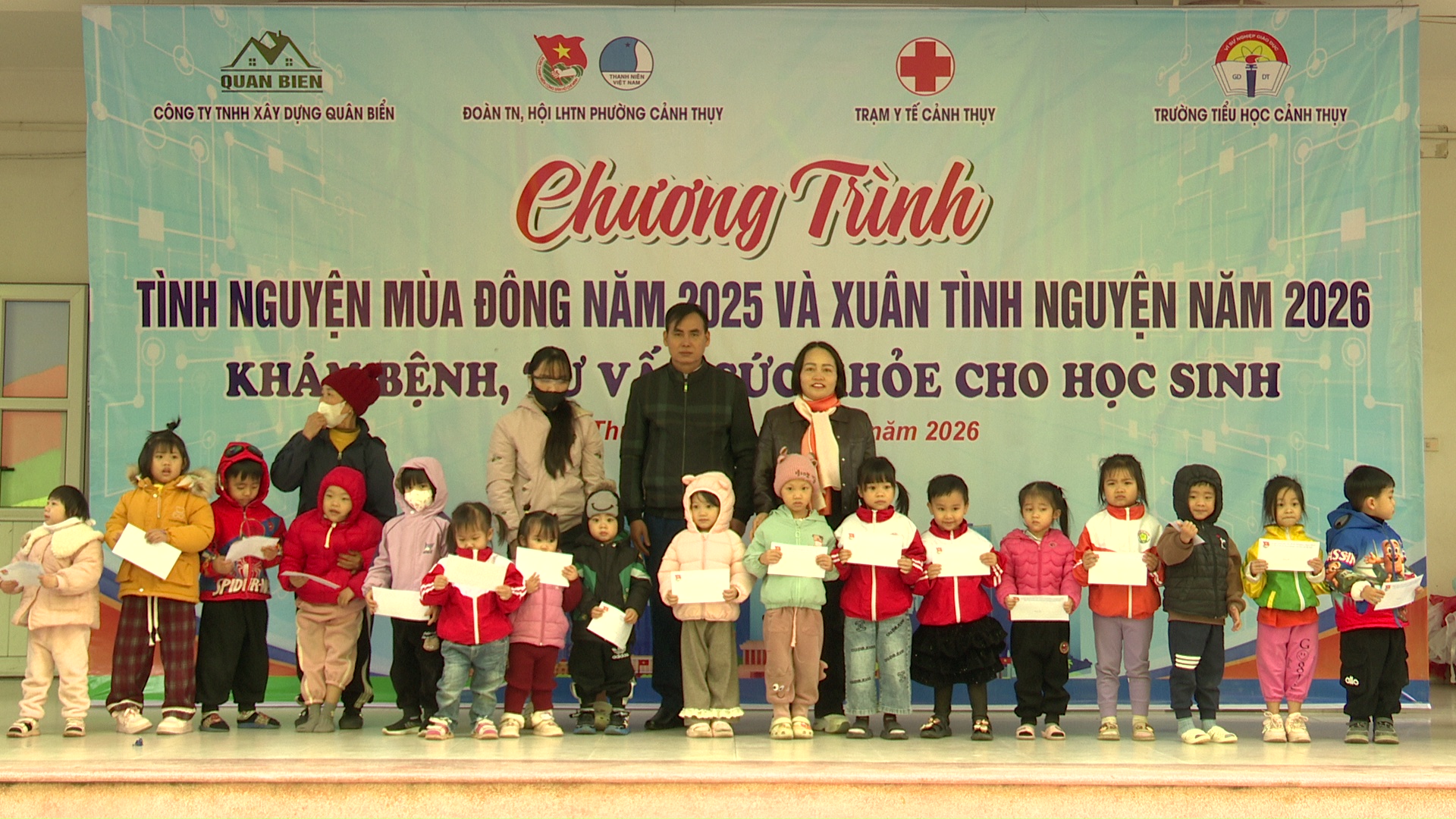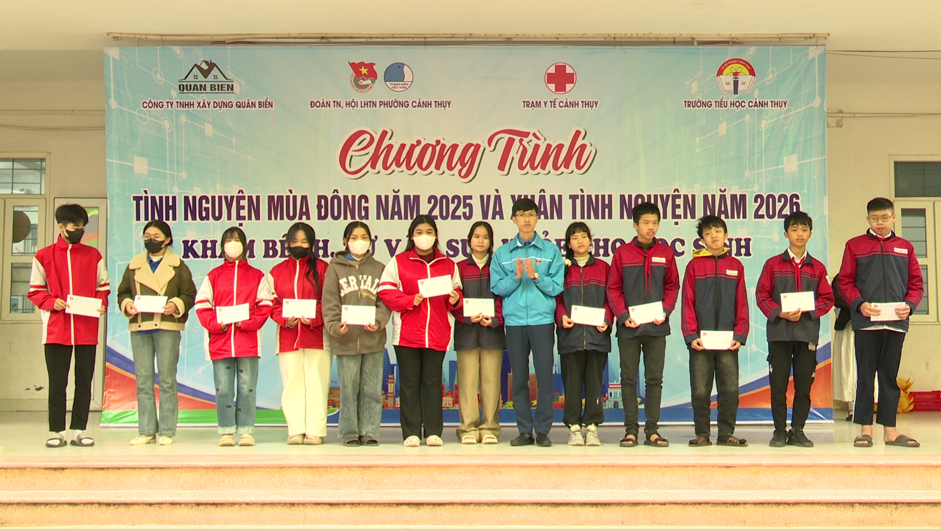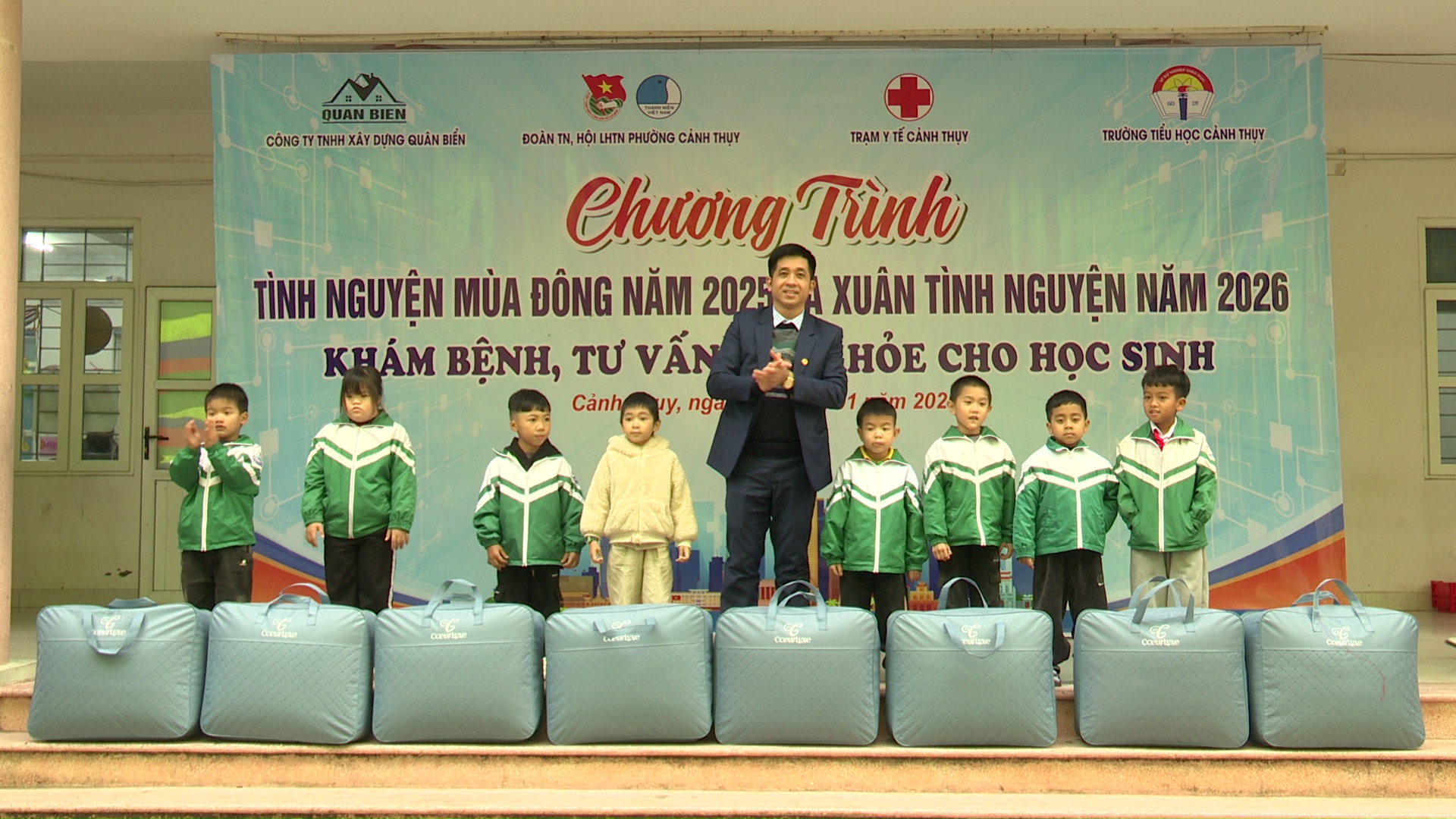 Chiều ngày 21/1, tại trường Tiểu học Cảnh Thụy, Đoàn thanh niên- Hội Liên hiệp thanh niên phường phối hợp Trạm y tế Cảnh Thụy, Công ty TNHH Xây dựng Quân Biển tổ chức chương trình Tình nguyện mùa đông năm 2025 - Xuân Tình nguyện năm 2026; khám bệnh, tư vấn sức khỏe cho học sinh. Dự chương trình có đồng chí Khổng Minh Tùng - Ủy viên BTV Đảng ủy, Phó Chủ tịch UBND phường.