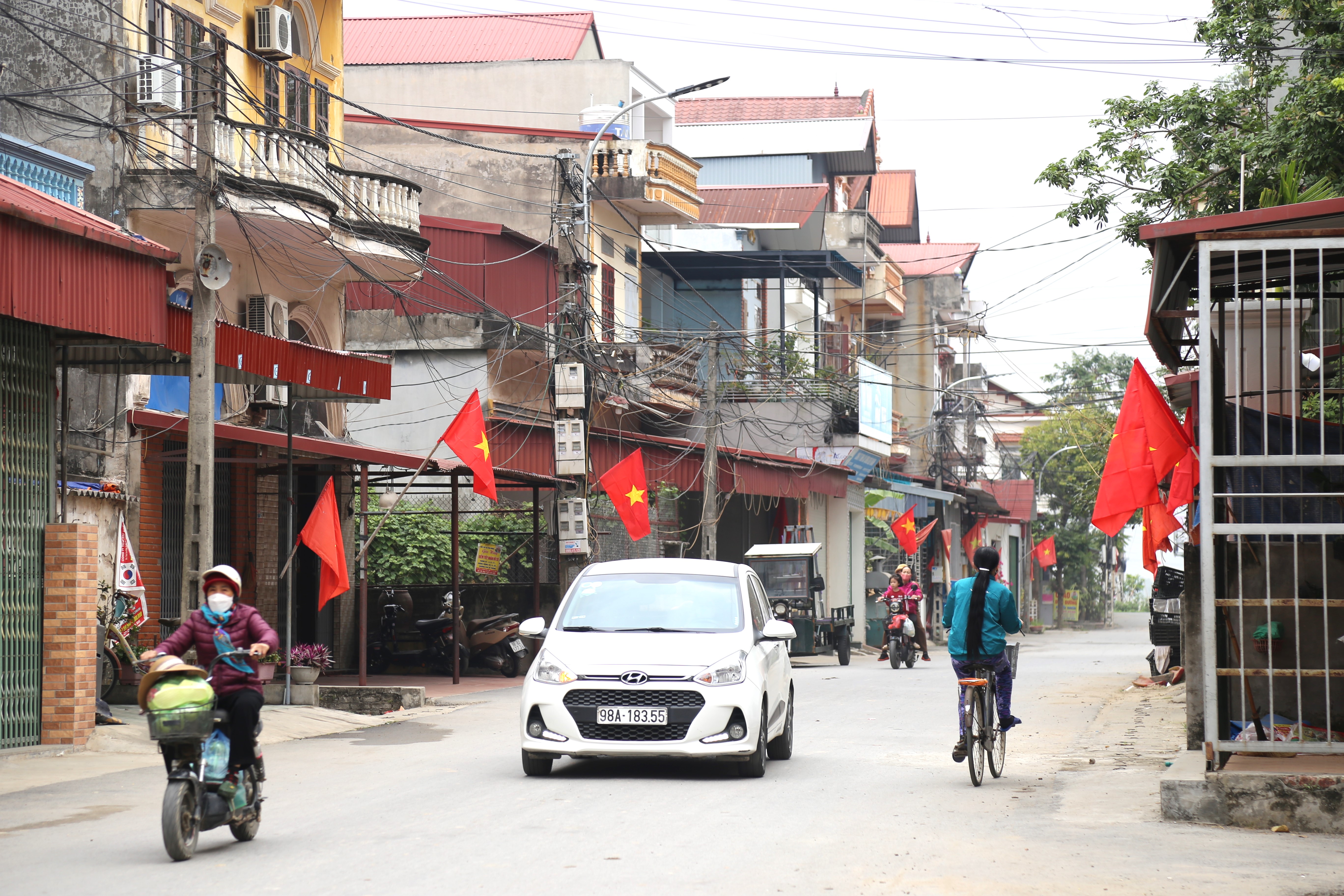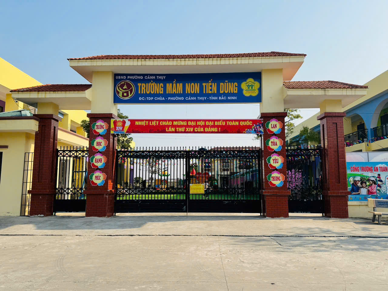 Tại các trường học, nhà văn hóa TDP, trụ sở cơ quan, trục đường chính được trang hoàng cờ, khẩu hiệu chào mừng Đại hội đại biểu toàn quốc lần thứ XIV của Đảng
