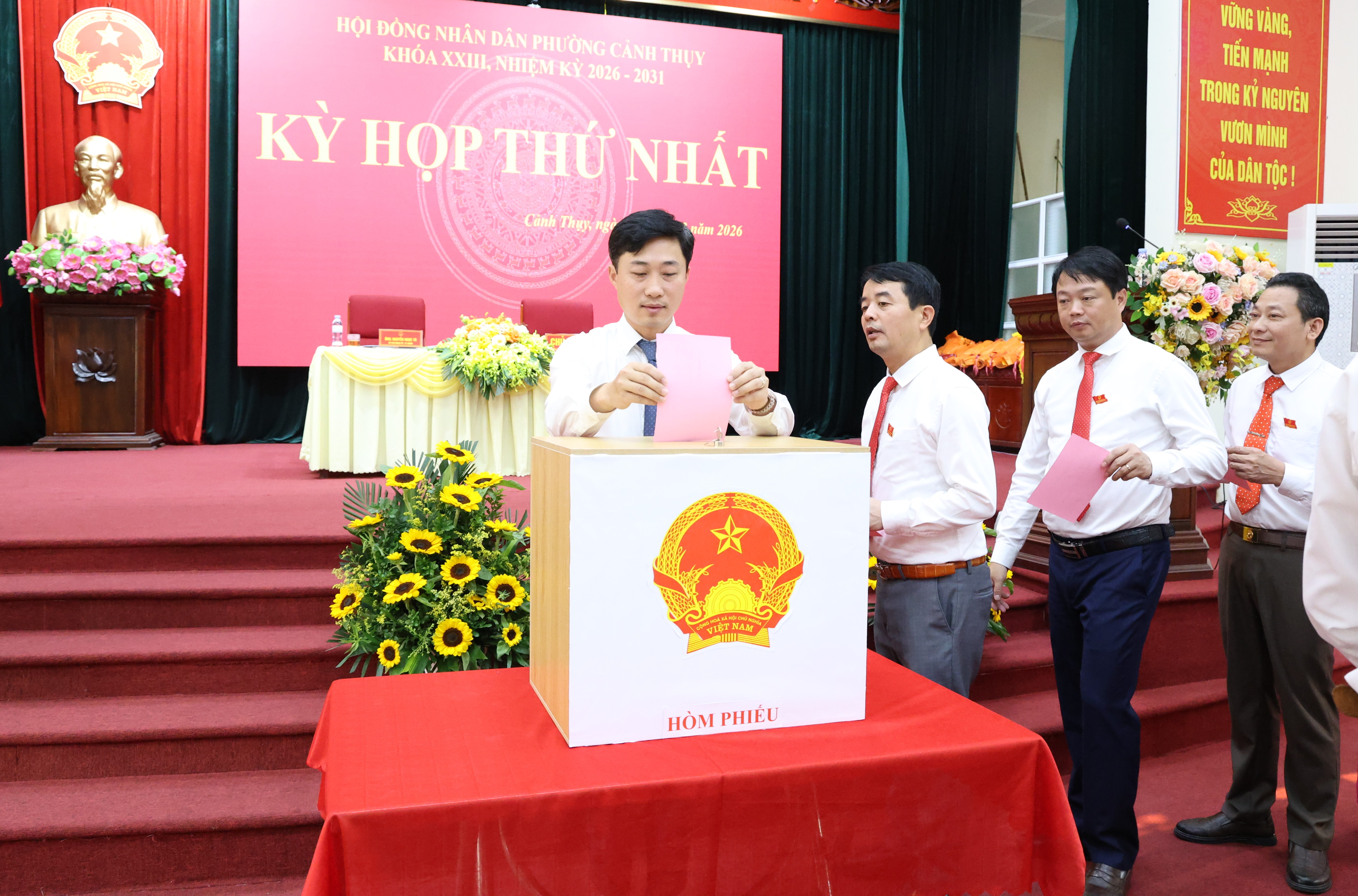 Tại đây, HĐND phường bầu ông Nguyễn Ngọc Tú - Bí thư Đảng ủy phường, chủ tịch HĐND phường khóa XXII, nhiệm kỳ 2021 - 2026 tiếp tục giữ chức chủ tịch HĐND phường khóa XXIII, nhiệm kỳ 2026 - 2031; ông Hoàng Trọng Đông - Phó chủ tịch HĐND phường khóa XXII, nhiệm kỳ 2021 - 2026 giữ chức Phó chủ tịch HĐND phường khóa XXIII, nhiệm kỳ 2026 - 2031.